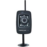 The Foscam FI8909W-NA Wireless IP Camera (Black) features high quality video and audio, remote Internet viewing, motion detection, night vision as well as a built-in network video recording system. In addition, it is smartphone compatible (iPhone android & Blackberry) as well as viewable over the Internet network using the standard Safari browser (no app necessary). The camera functions well as an iPhone baby monitor or as part of a home or office security system with remote Internet monitoring ability.